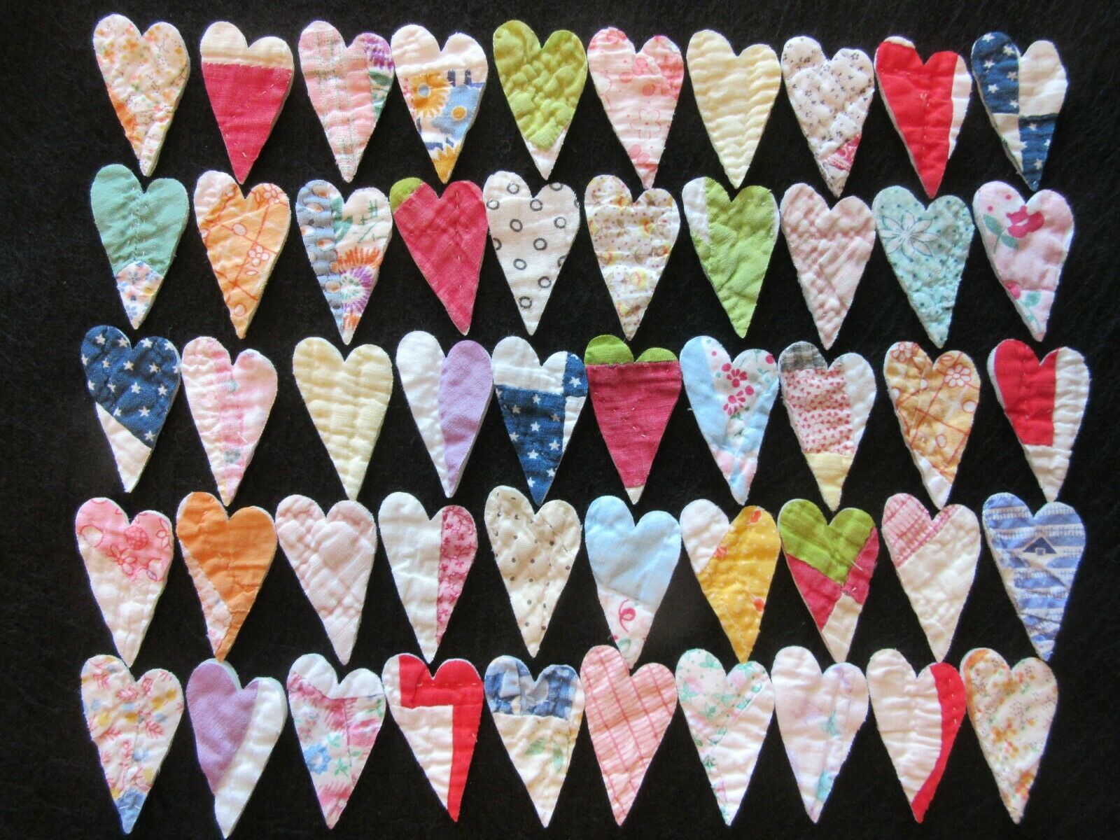 50 COLORFUL VTG CUTTER QUILT MINI HEARTS - CARD MAKING! - SO CUTE!