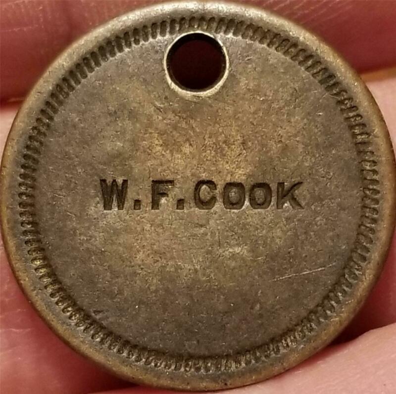 Title (ebay affiliate link): Vtg. Antique Brass Token Tool Check Keychain Tag W.F. COOK 702 STAR all incuse