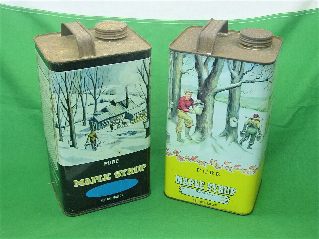 Title (ebay affiliate link): VINTAGE ANTIQUE MAPLE SYRUP GALLON TINS W/ BEAUTIFUL SUGAR SHACK GRAPHICS PAIR