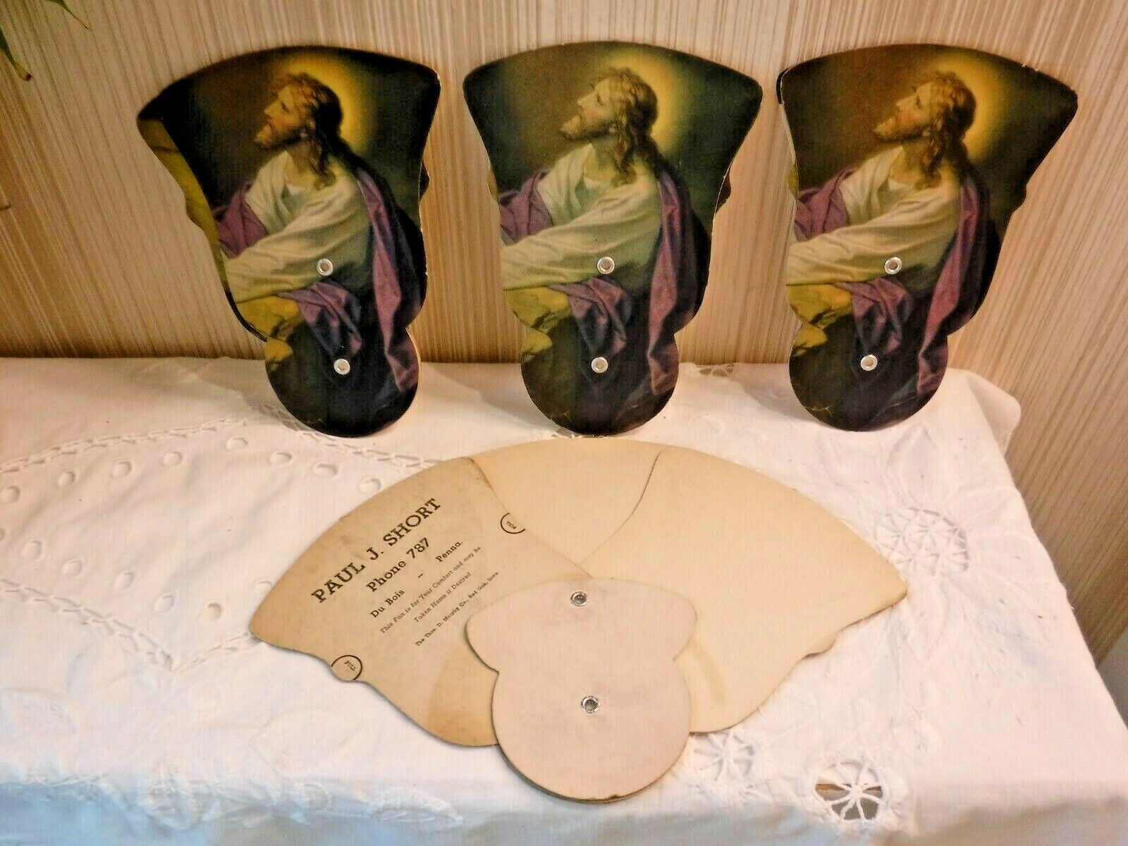 Title (ebay affiliate link): VINTAGE 4 Paul J Short DuBois PA Funeral Home Hand Held Fold Fans-Phone # is 787