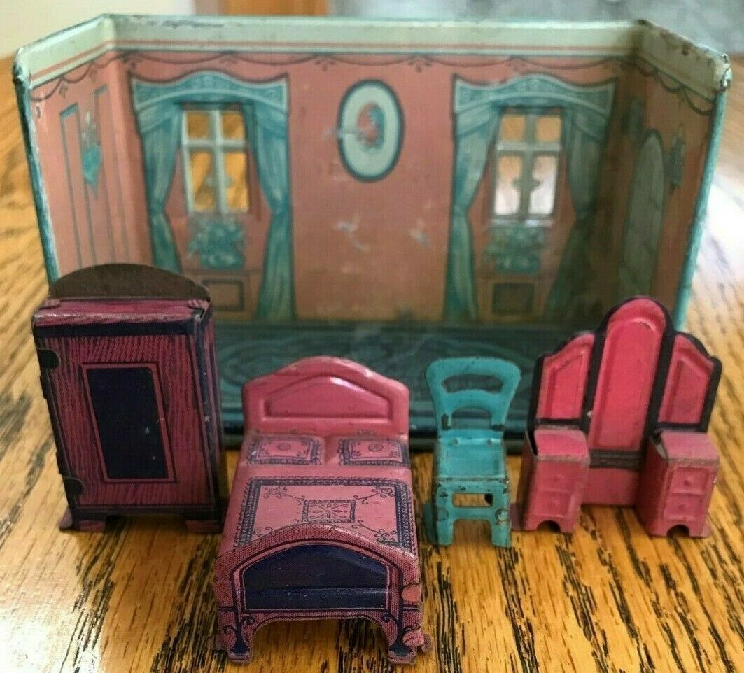 Title (ebay affiliate link): Vintage 1920''s Marx Newlyweds Miniature Tin Playset w/ Furniture Bedroom