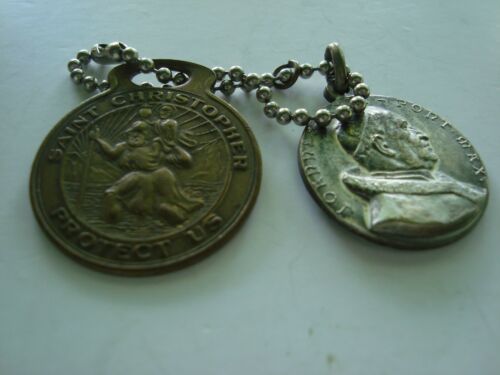 Title (ebay affiliate link): Vintage Saint Christopher Protect Us Brass Key Chain Fob & Pope XXIII Locket