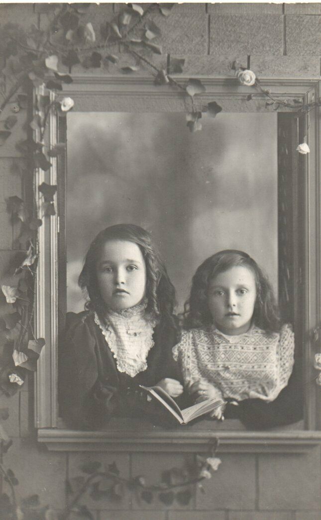 Title (ebay affiliate link): VINTAGE PHOTOGRAPH: TWO LITTLE GIRLS LOOKING THROUGH A WINDOW WITH A BOOK