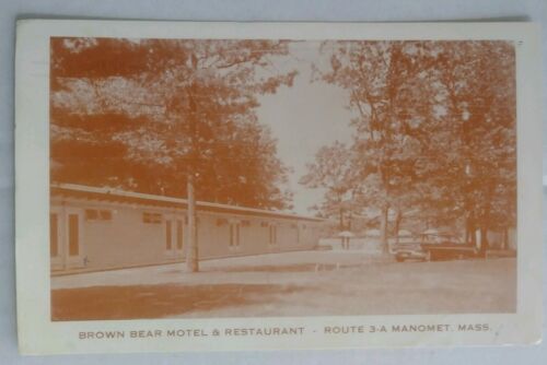 Title (ebay affiliate link): Plymouth MA Mass vintage postcard, Manomet, old car outside Brown Bear Motel