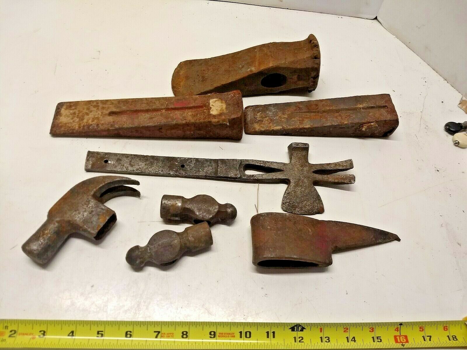 Vintage tool lot hammer head splitting wedges maul hatchet pick ball peen