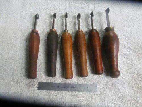 Title (ebay affiliate link): (6) VINTAGE WOODEN HANDLED MARKING TOOLS, EACH HAS A KNURL ON THE END.