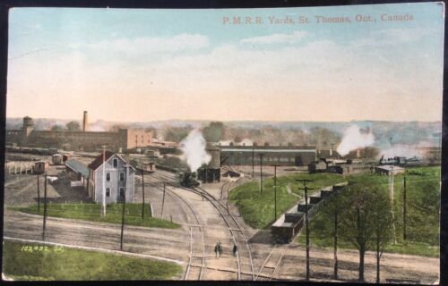 Title (ebay affiliate link): P.M.R.R. Yards, St Thomas, Ontario - 1911 Postcard