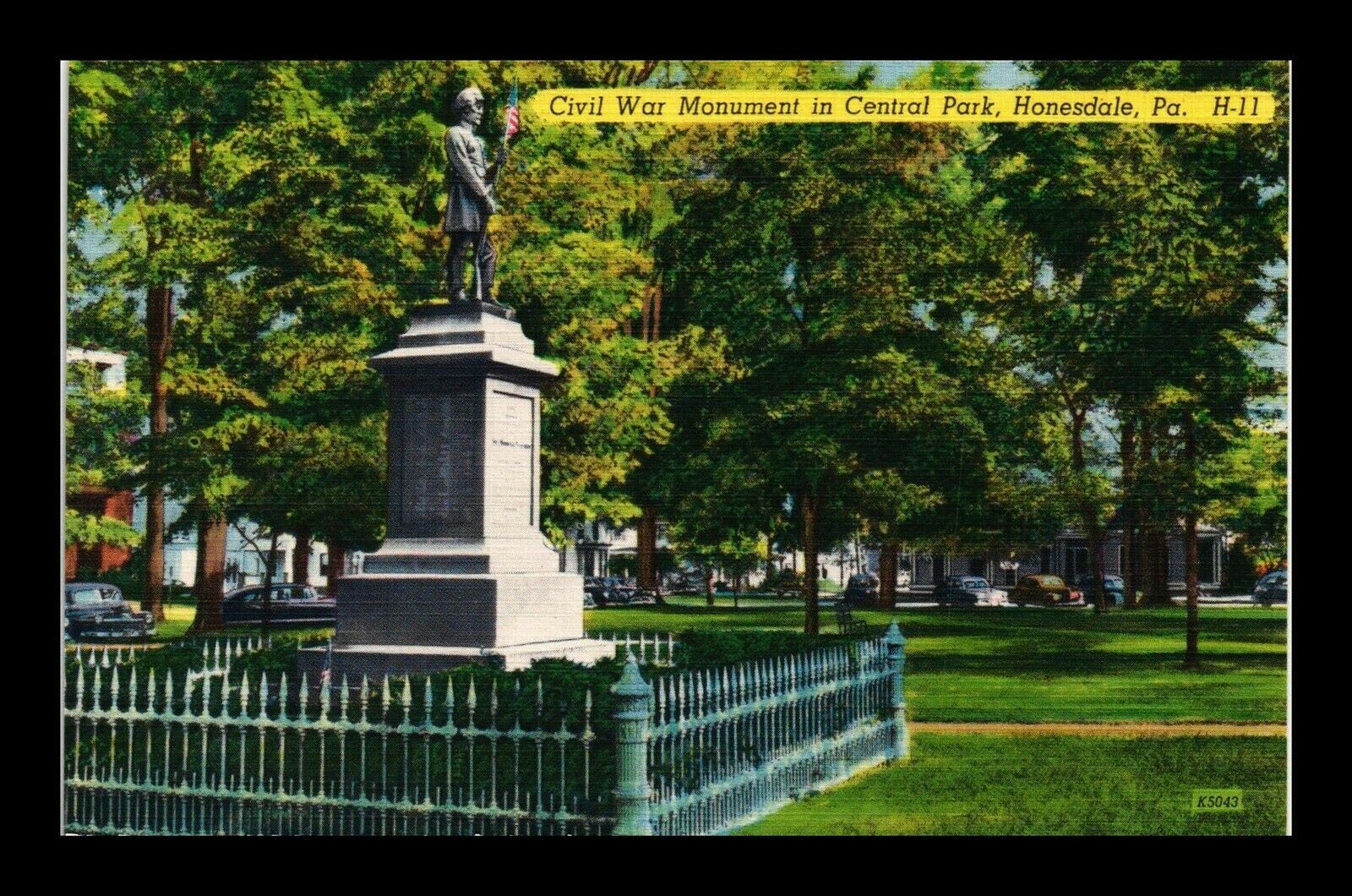 Title (ebay affiliate link): US LINEN POSTCARD CIVIL WAR MONUMENT CENTRAL PARK HONESDALE PENNSYLVANIA