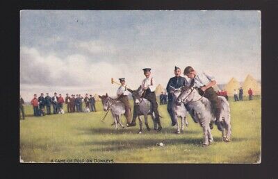 RED 1 PENNY STAMP 1906? Polo on Donkeys TUCK OILETTE Volunteer Life in Camp 9107