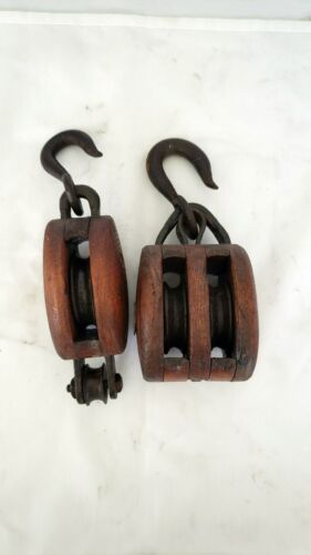Title (ebay affiliate link): Vintage wooden block and Tackle pair 2