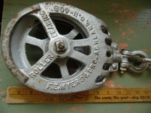 Title (ebay affiliate link): VINTAGE F E MYERS & Bro. ROLLER BEARING H-408 CAST IRON Pulley Block & Tackle