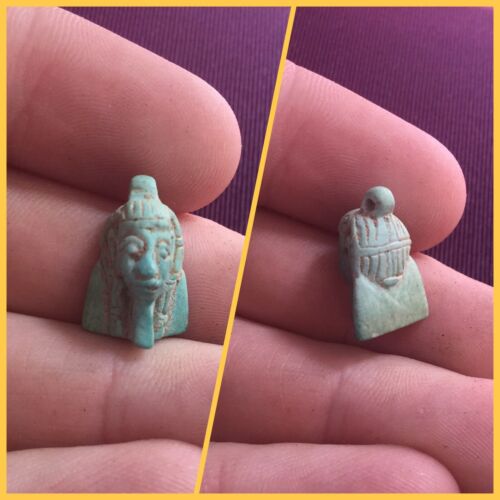 Title (ebay affiliate link): Rare ancient Egyptian faience Pharaoh Head amulet, 300 bc