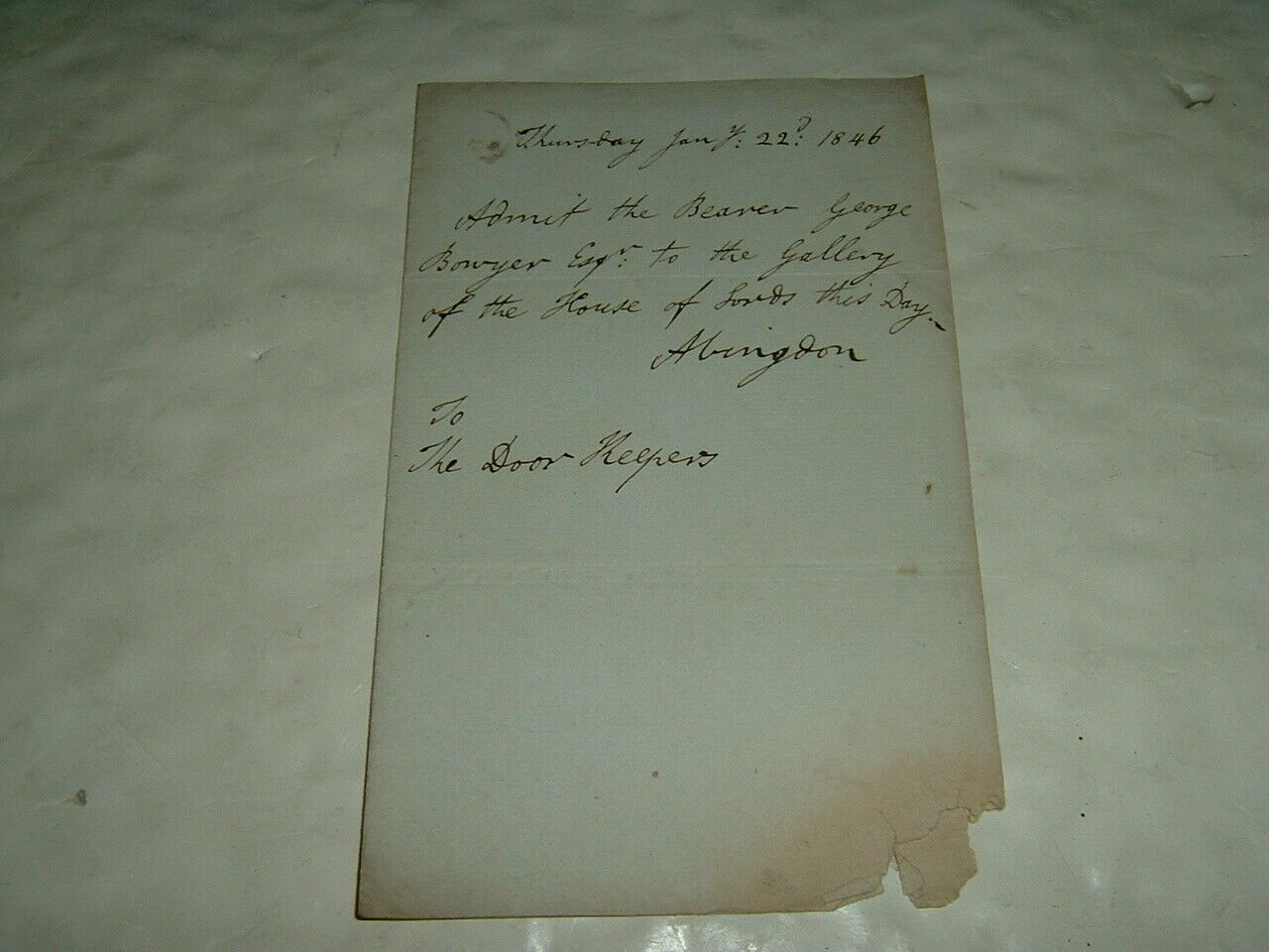 Title (ebay affiliate link): Ephemera Ticket House Of Lords 1846 Earl Abingdon For George Bowyer Politics