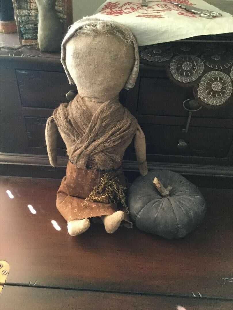 Title (ebay affiliate link): EARLY PRIMITIVE HANDMADE CLOTH RAG DOLL AND PUMPKIN