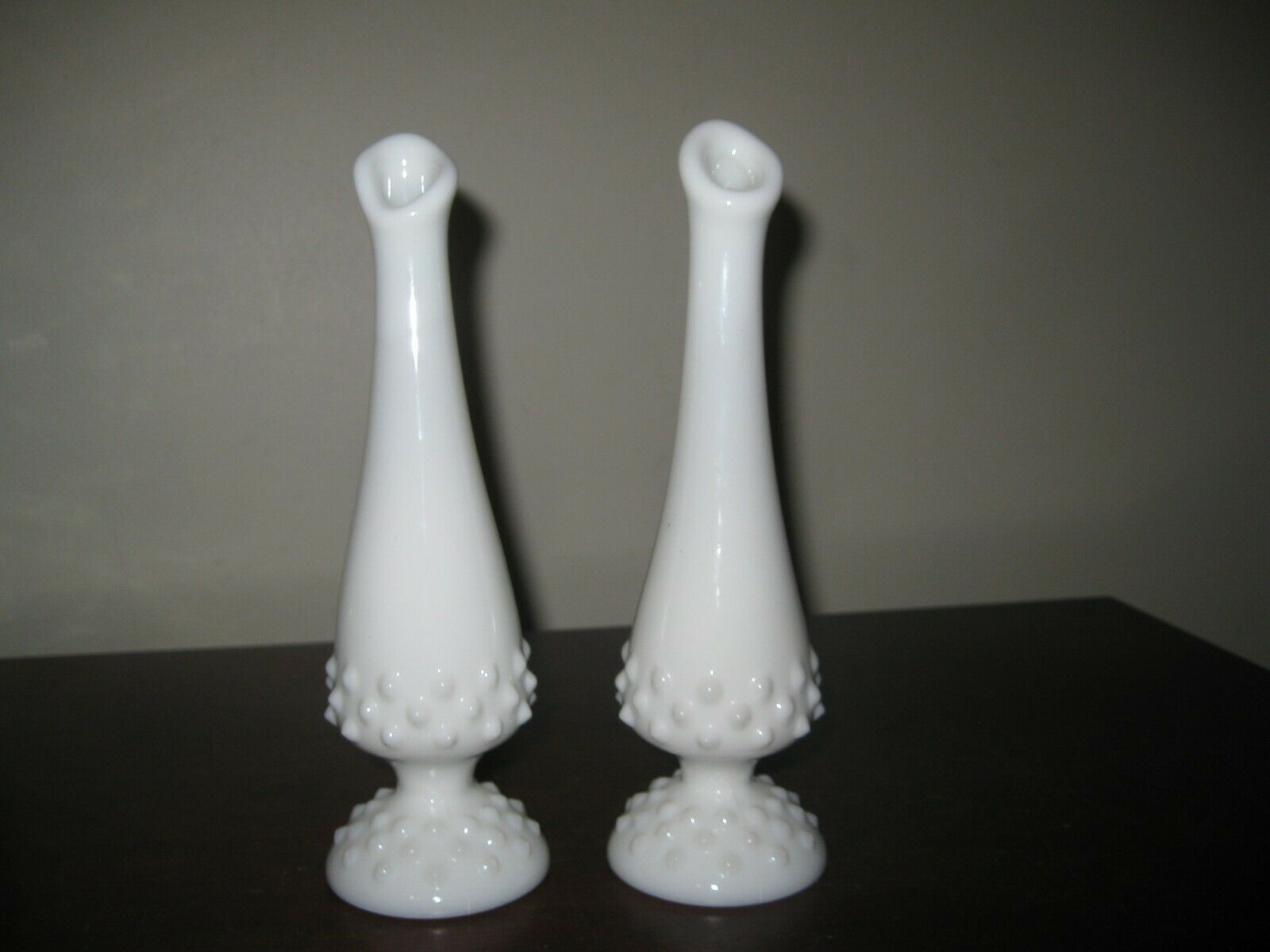 Title (ebay affiliate link): Pair of Vintage Fenton White Milk Glass Hobnail Swung Bud Vases 8"