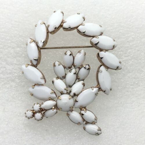 Title (ebay affiliate link): Vintage FLOWER SPRAY BROOCH Pin White Marquise Milk Glass Rhinestone Jewelry