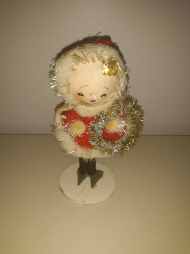 Vtg Mrs. Santa Claus Sock Face Wreath Figurine Japan 1961