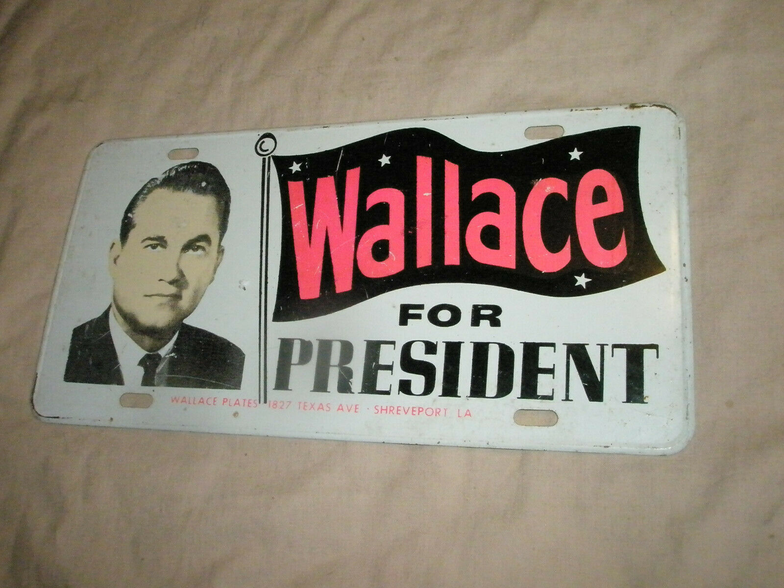 Title (ebay affiliate link): Vintage Original (1968) Wallace for President License Plate Shreveport LA.