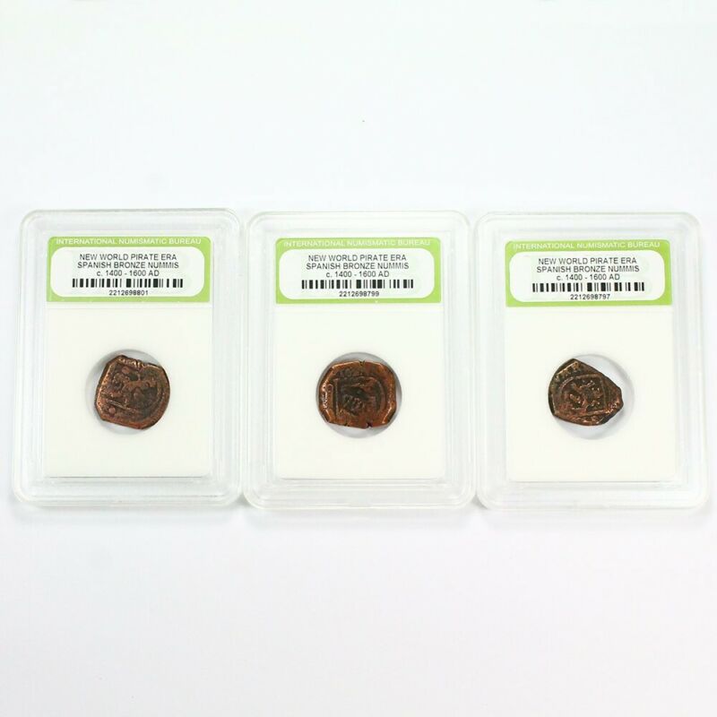 Title (ebay affiliate link): 3 Pirate Era - 1600''s Early America Spanish Bronze Cobs Exact Lot Shown 9536