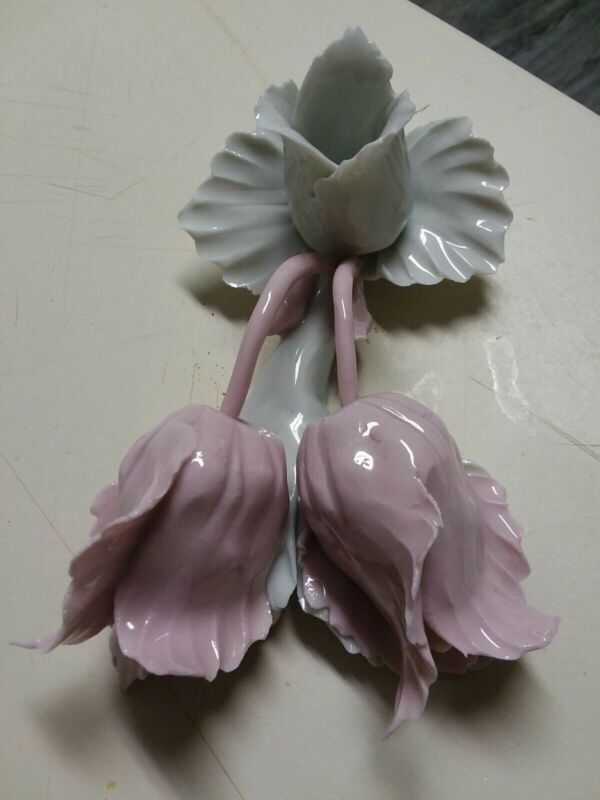 Nuova Capodimonte Ceramic Porcelain Flower Candle Holder Brand New