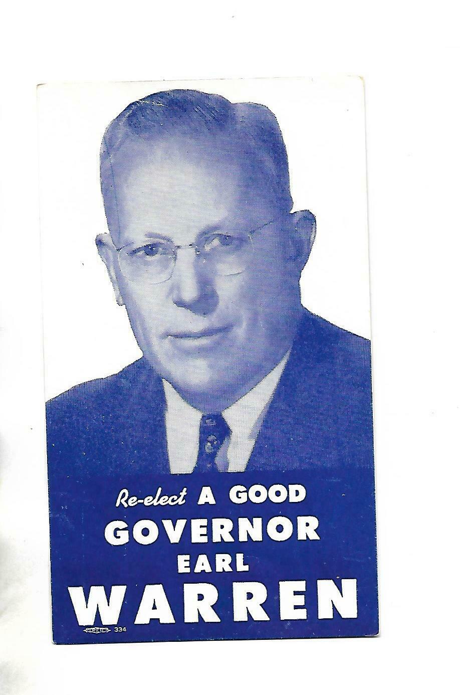 Title (ebay affiliate link): 1946 Re-Elect Earl Warren For Calilfornia Governor Post Card