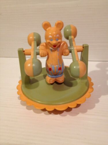 1950s Baby Toy Pink Blue Bakelite Plastic Bear Clown Chime Bell Roly Poly Spin