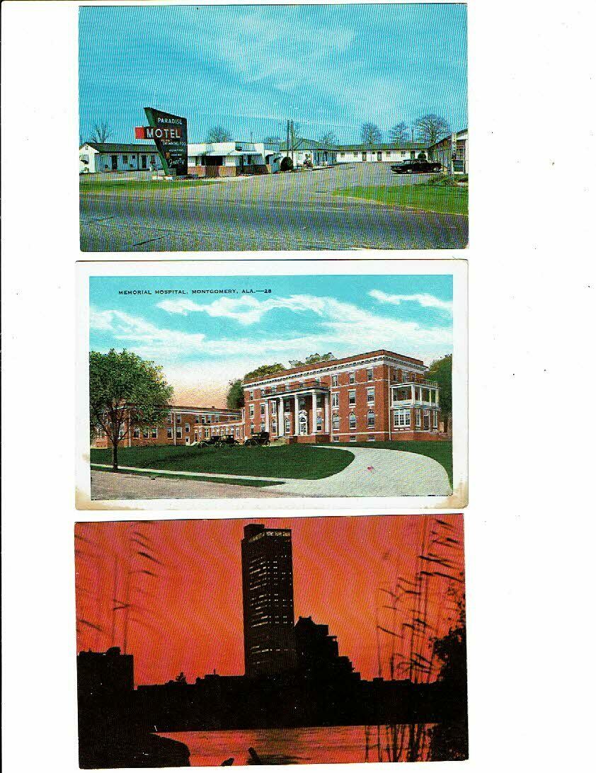 Title (ebay affiliate link): 3 Card Alabama Lot, Montgomery Motel and Hospital, Mobile Strange View!