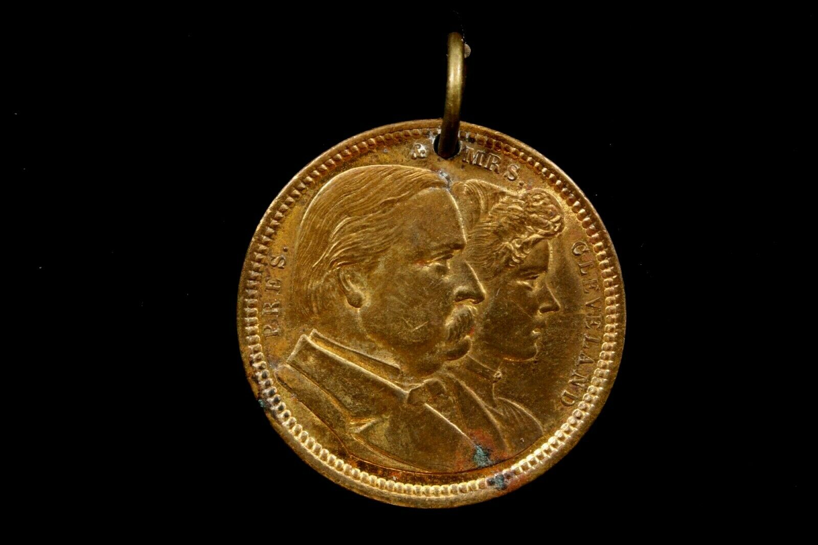 ONE PRESIDENT & MRS. CLEVELAND POLITICAL TOKEN/PENDANT COLORFUL PATINA