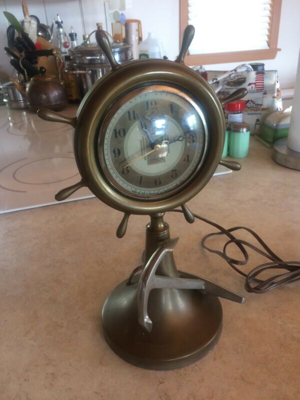Title (ebay affiliate link): Ingraham Solid Brass Ship Wheel and Anchor Electric Clock