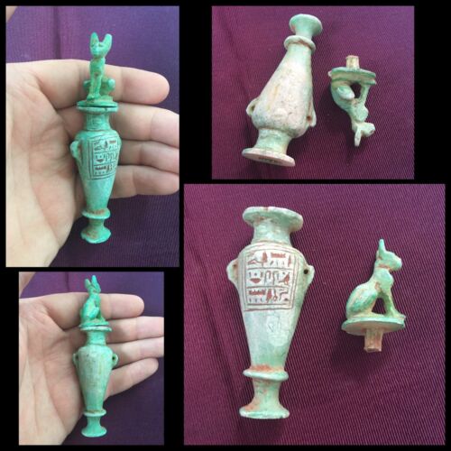 Title (ebay affiliate link): Rare ancient Egyptian blue cat and mini vase amulet, 300 bc