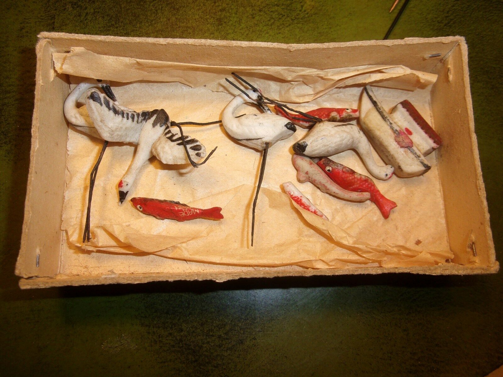 SWEET OLD Cake Toppers FLAMINGOS BIRDS FISH BOAT 1930s ALL BISQUE