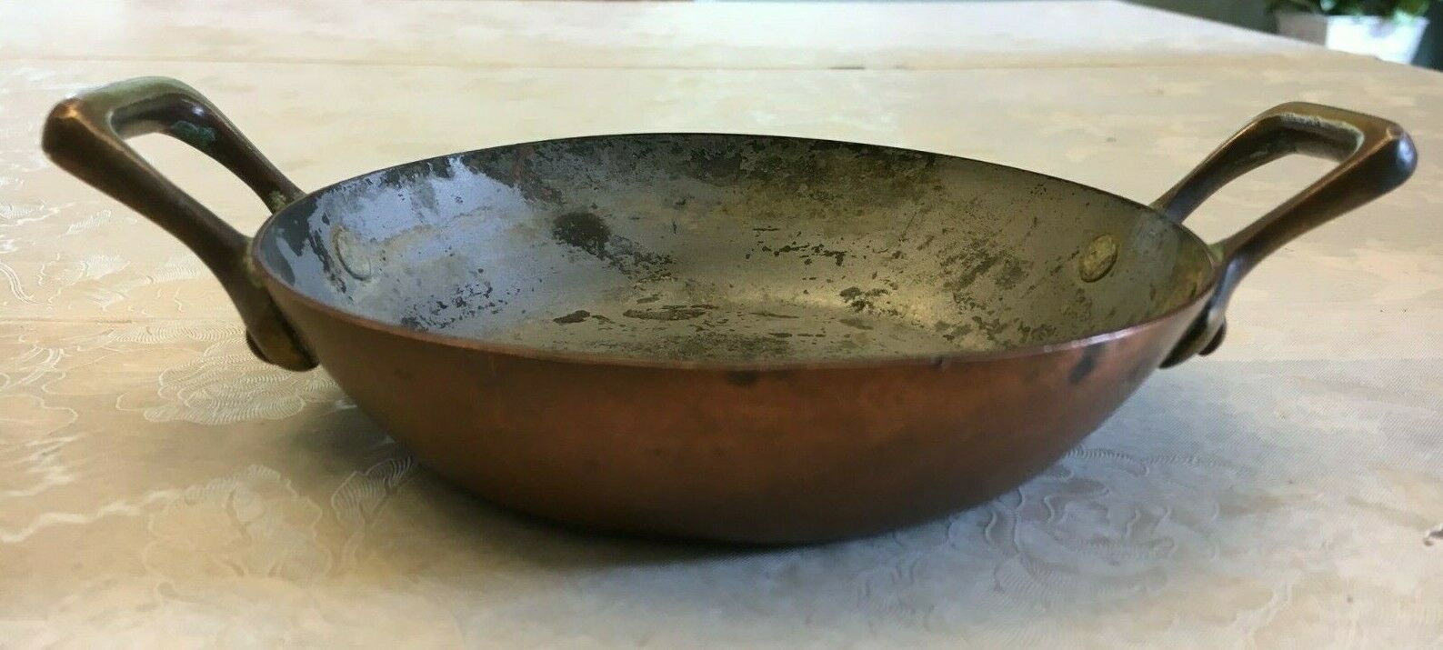 VINTAGE / ANTIQUE SMALL COPPER DISH / PLATE WITH BRASS HANDLES
