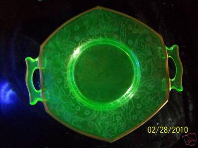 Title (ebay affiliate link): Green Depression Double Handled Plate, Vaseline Glass?