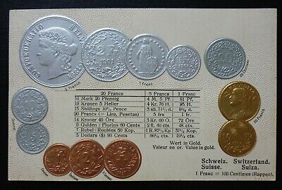 Vintage Original Postcard SWITZERLAND Money Banknote Coins N2