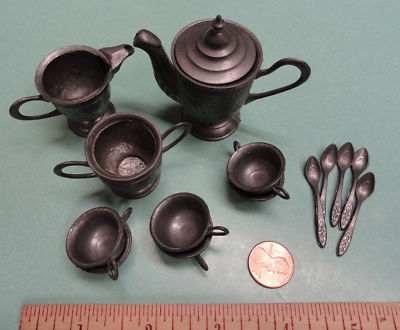 15 antique miniature doll house size metal dishes
