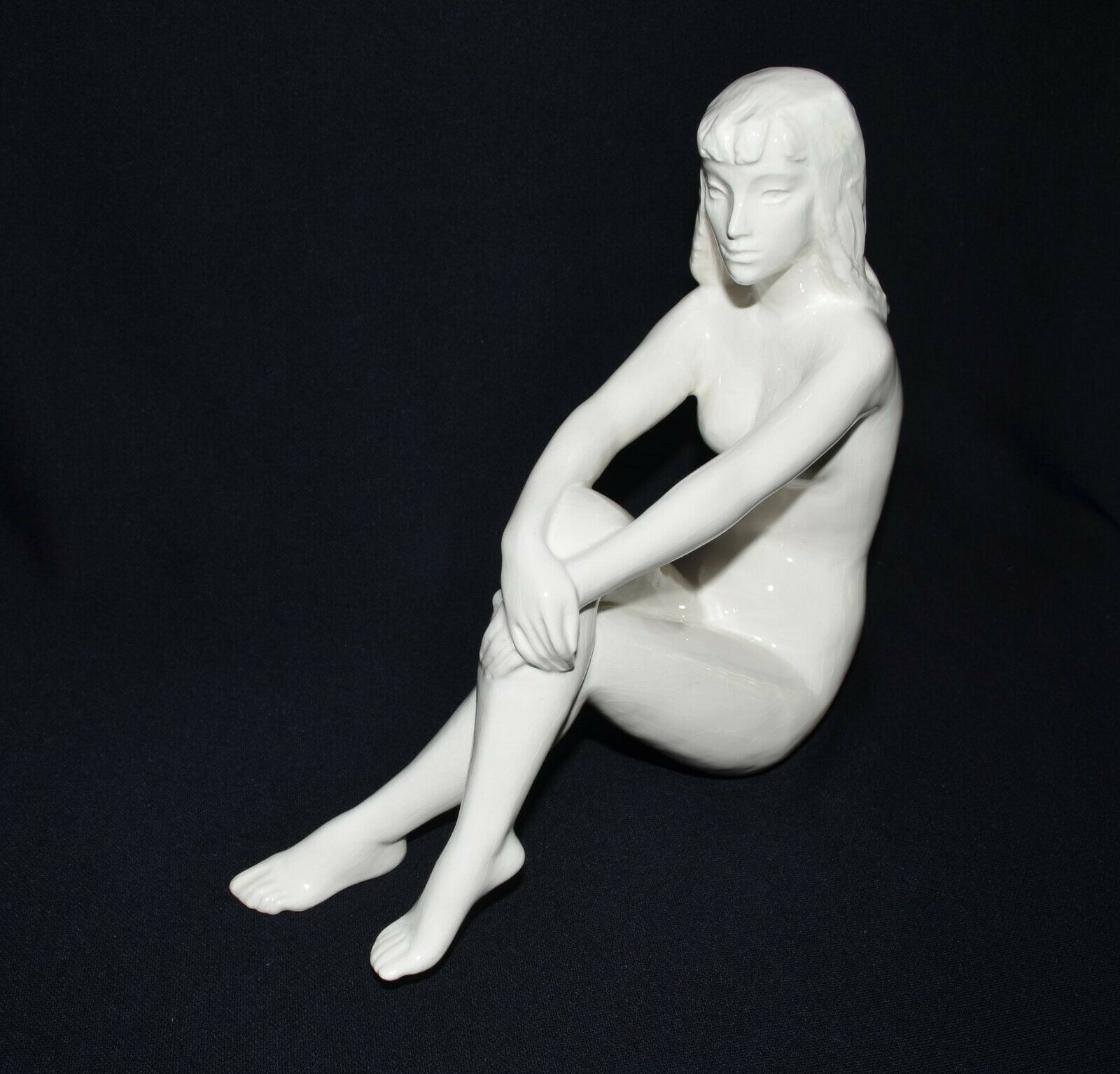 Title (ebay affiliate link): 1930''s Bohemia Art Deco Glossy White Finish Porcelain Sitting Nude Girl Figure