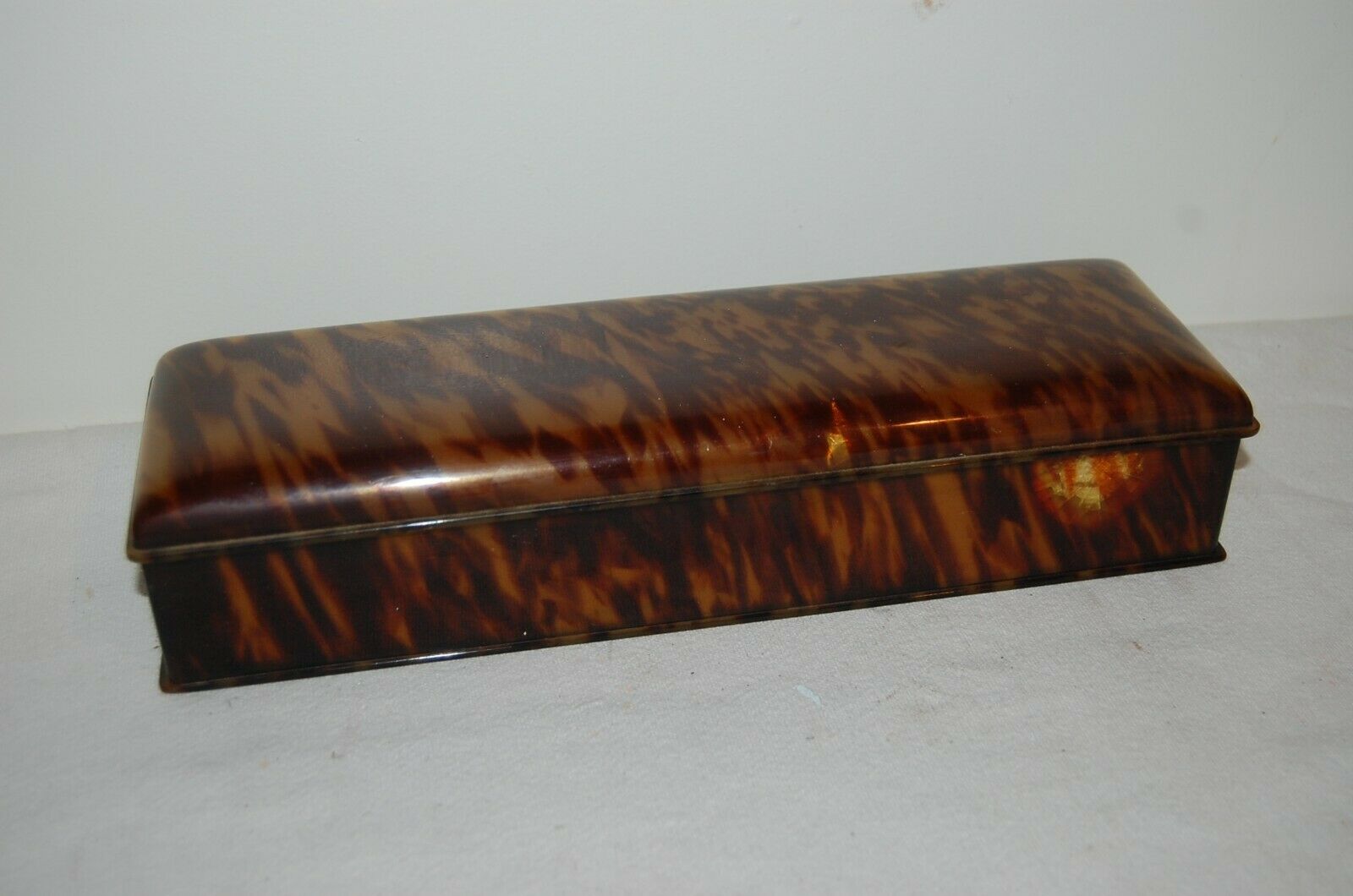 Antique Faux Tortoise Shell Velvet Lined Jewelery Box