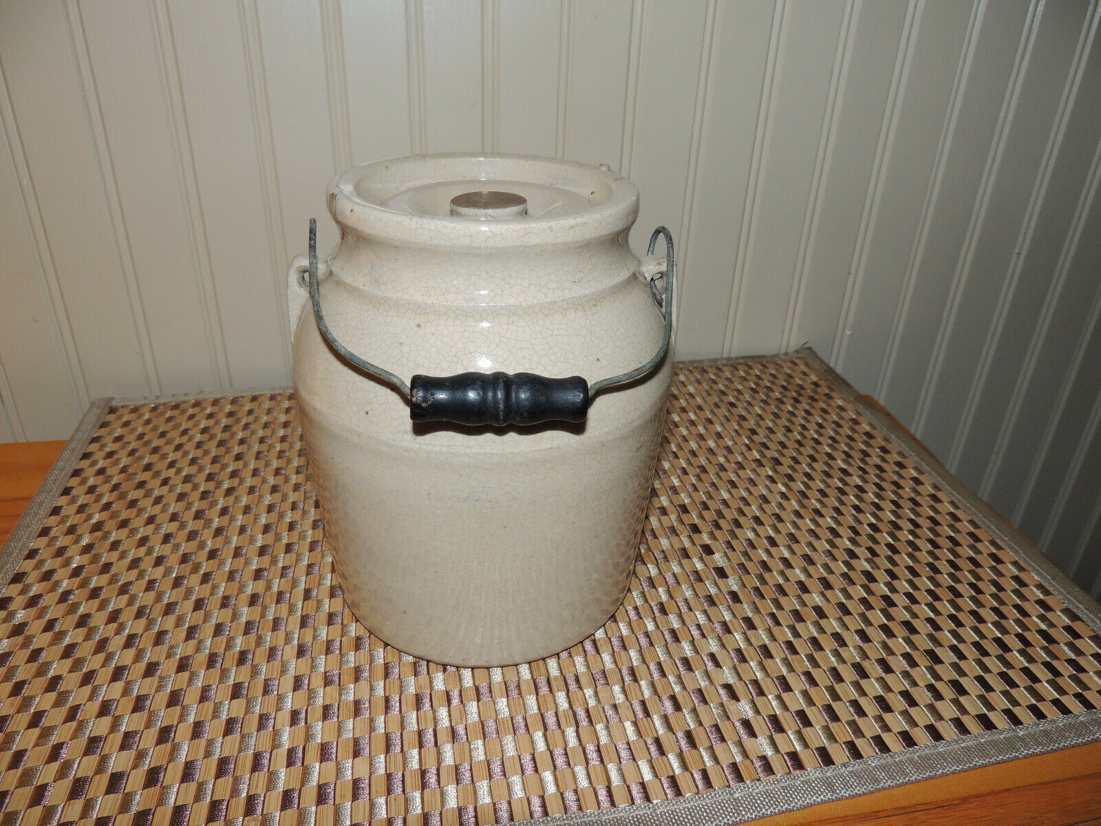 Small Antique Salt Glazed Crock with Handle and Cover Ginger Jar Style