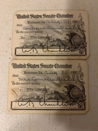 Title (ebay affiliate link): 2x U.S. Senate Chamber Pass for the 77th Congress, 1942 Signed