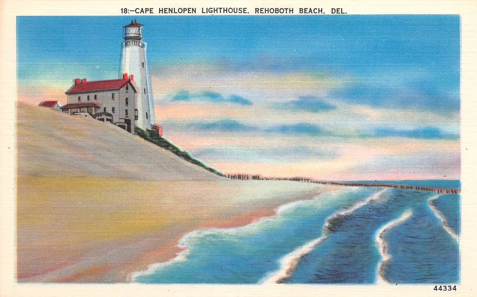 Title (ebay affiliate link): C22-4958, CAPE HENLOPEN LIGHTHOUSE, REHOBOTH BEACH, DEL., POSTCARD.