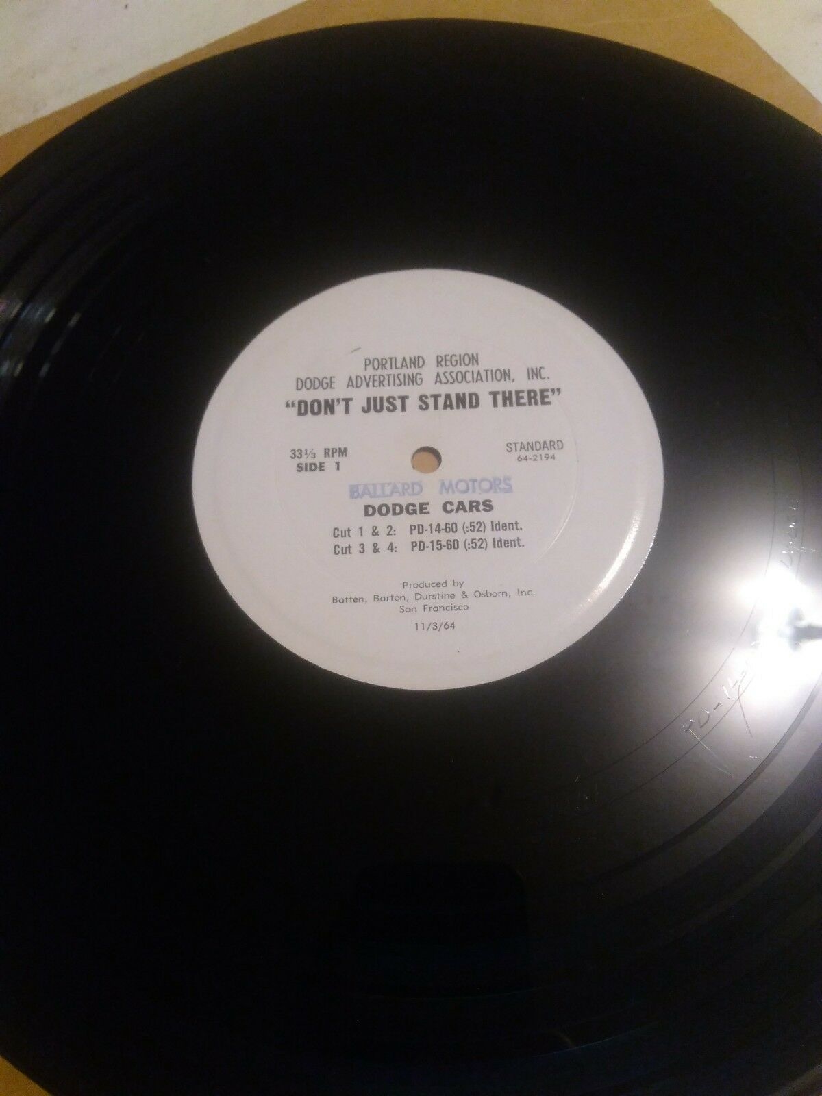 1964 DODGE MOPAR UNIVERSAL AND RADIO RECORDERS 33 RPM LP ADVERTISING RECORD