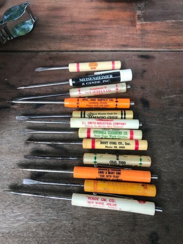 Title (ebay affiliate link): Lot of 12 Vintage Advertising Mini Pocket Screwdrivers AT&T,HITACHI,STATE FARM.