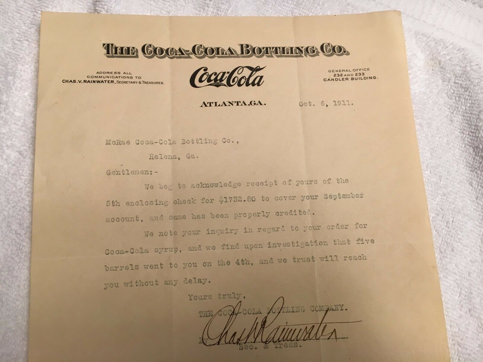 Title (ebay affiliate link): 7.24 1911 Coca Cola Bottling Atlanta GA Rainwater Signed Paper Sign Letterhead