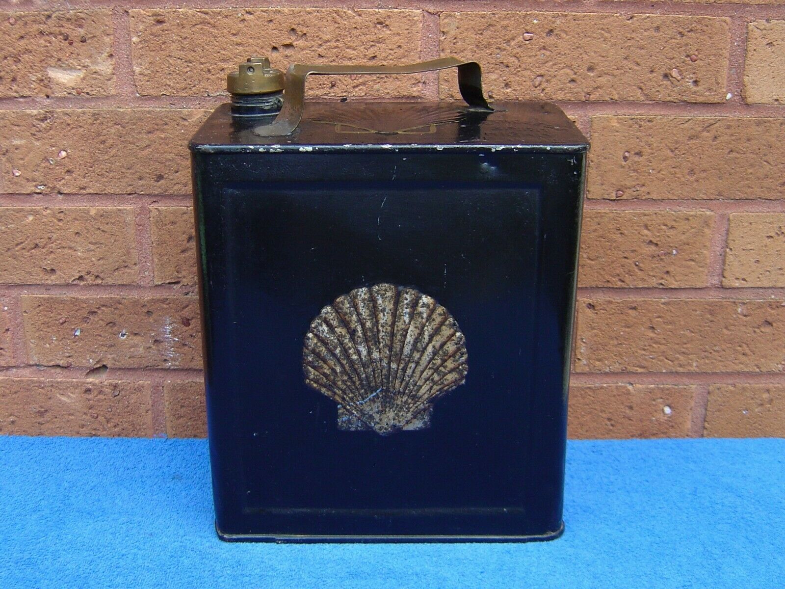 Title (ebay affiliate link): Superb Early Original Vintage Shell 2 Gallon Petrol Oil Fuel Can c1920s