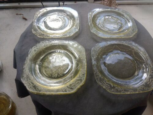 Lot 5 Federal Glass Amber Yellow Depression Glass Madrid Sherbet Service Plates