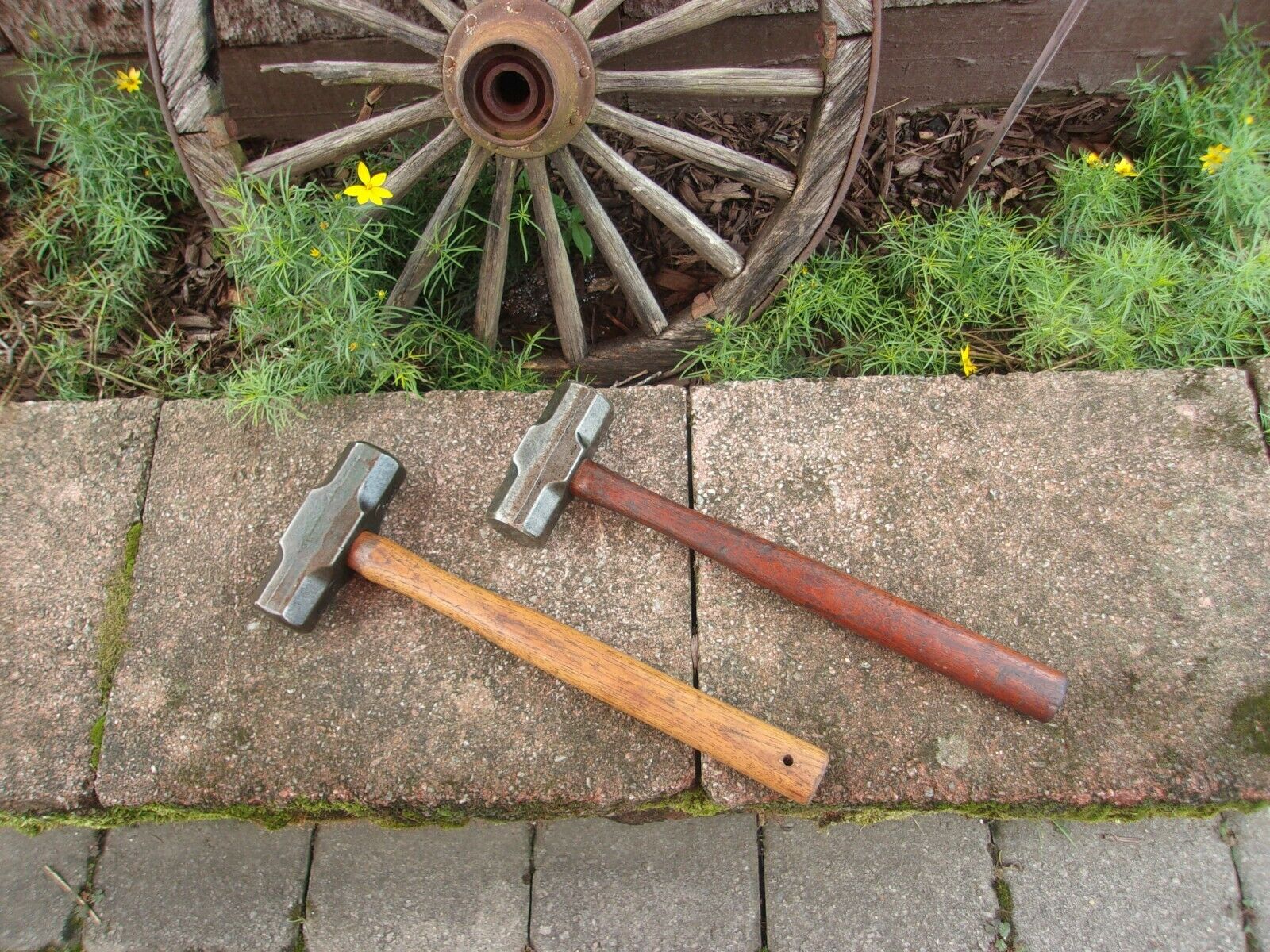 2 VINTAGE BLACKSMITH / SLEDGE HAMMERS { US 4 LB & DROP FORGED 3 LB }