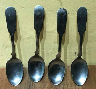 Set of 4 Antique American Pewter Spoons, Hall & Elton, Wallingford, CT., c 1850