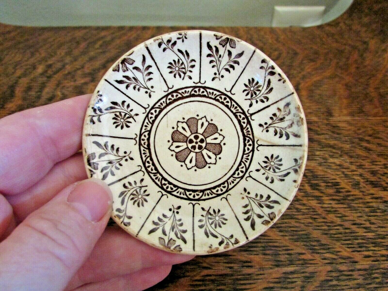 Antique WEDGWOOD Aesthetic Brown Transfer Ware Butter Pat