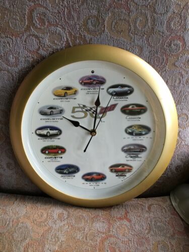 Vroom! 50th Anniversary Chevy Corvette 14" Clock Engines Rev On The Hour!