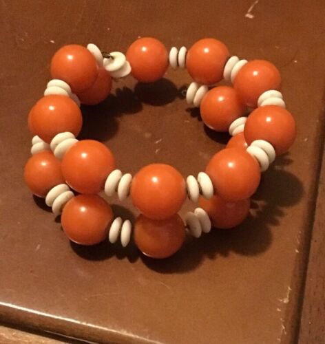 Vintage Orange Bakelite And Milkglass Coil Bracelet.